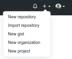 Dans l’interface de GitHub, tout en haut à droite, cliquez sur le symbole + puis sur « New repository » :