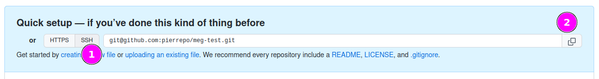 Enfin, cliquez sur le bouton gris « SSH » et copiez l’adresse de connexion de votre dépôt qui débute par git@github.com, vous en aurez besoin pour la suite :